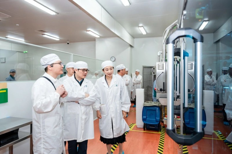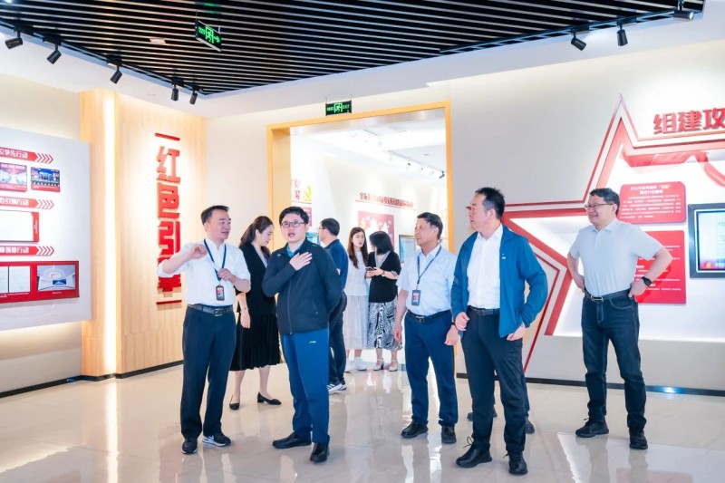 座談結束后,張主席一行繼續參觀了公司的黨建展廳和生產車間。對公司黨建工作表示高度贊揚。在生產車間,現代化的生產設備高效運轉,嚴謹規范的生產流程有序進行,每一個環節都彰顯著企業對品質的執著追求,領導們不時駐足詢問與交流,深入了解了現代化藥品生產的流程。